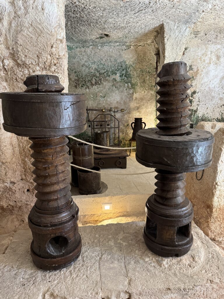 There are many places to taste olive oil in Puglia, but one stands out for us: Frantoio Savoia in Pezze di Greco, Fasano. Set within Masseria Pezze d’Aglio, an 18th-century farmhouse surrounded by sixty hectares of olive groves, the Savoia family produce award-winning extra-virgin olive oils that bridge past and present. Visitors can walk among monumental olive trees, step inside a medieval underground mill, explore an oil museum in a dramatic cave — before sitting down to taste the oils themselves.
